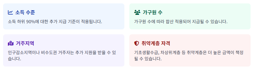 민생회복지원금은 단순히 똑같은 금액이 지급되는 것이 아닙니다. 다음 요인에 따라 지급액이 달라질 수 있습니다.