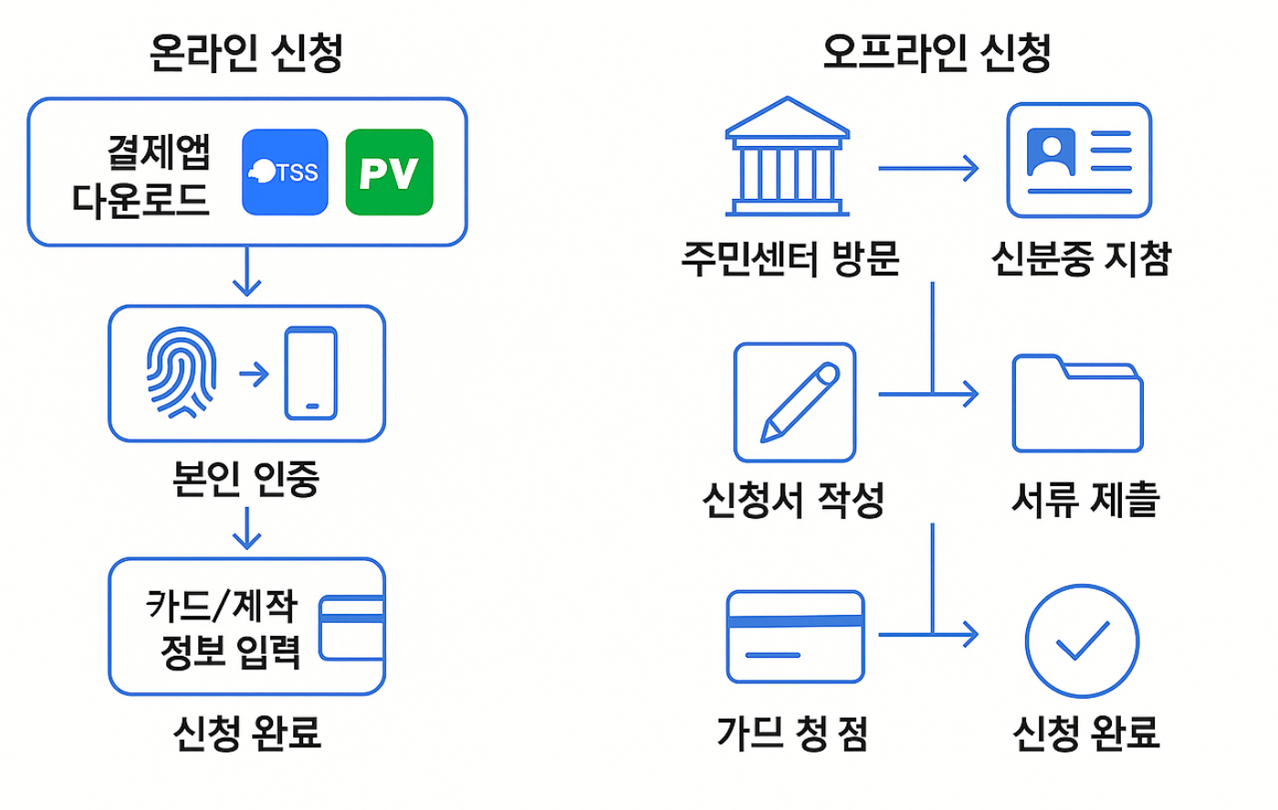 ✅ 신청 방법 선택 (온라인 vs 오프라인)